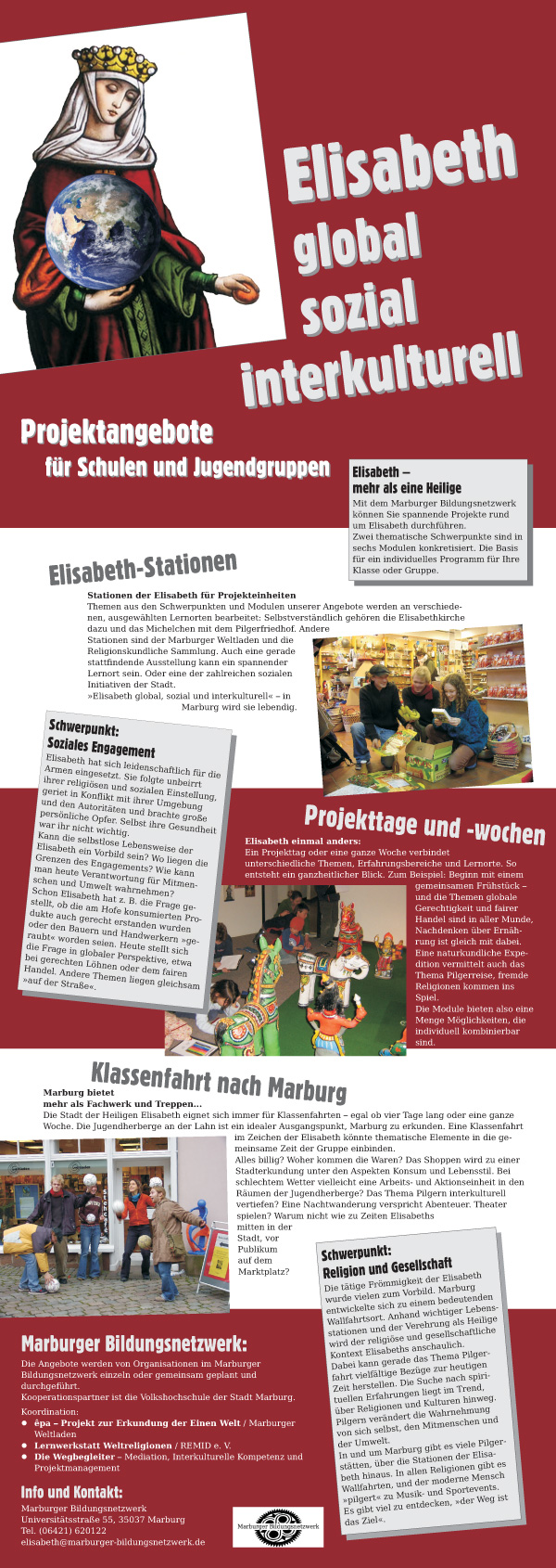Prospekt des Marburger Bildungsnetzwerks zur Bewerbung von modularisierten Angeboten für Schulklassen aus Anlass des Elisabethjahrs 2007.